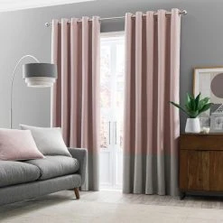 Dunelm Luna Block Blackout Eyelet Curtain Blush And Dove Grey