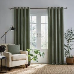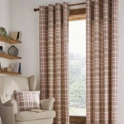 Catherine Lansfield Tweed Woven Check Natural Eyelet Curtains