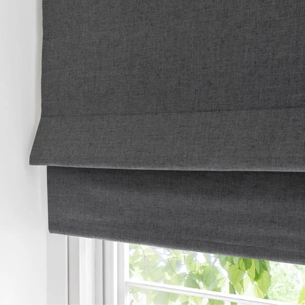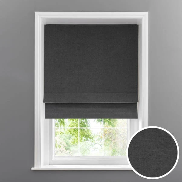 Fashioned from a beautiful linen blend for a natural finish, this blackout Roman blind is designed in a contemporary charcoal tone to suit a variety of décors. The quality blackout coating prevents unwanted external light from entering your home while improving privacy and reducing ambient noise. This blind is available in a variety of sizes to suit your requirements and is supplied with all fixings included.