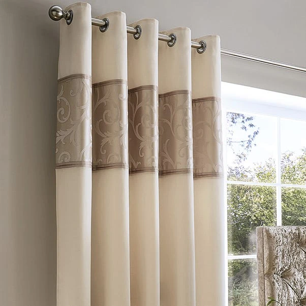 Featuring a jacquard panel pattern in a natural shade, these eyelet curtains contain a thermal lining to block out draughts, noise and sunlight, and are available in a range of drops.