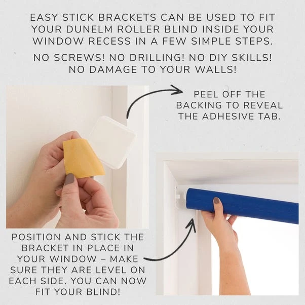 These blinds have the option to have easy stick brackets, making installing your roller blind a breeze. Designed with an adhesive backing, these brackets are simple to apply inside a window recess and hold the rod of your roller blind securely without the use of screws or nails. With no tools required, these brackets can be installed quickly, quietly and easily without mess or damaging your walls, making them great for rented properties. These brackets are fashioned in a neutral white tone to suit any decorative style, and can be given extra security by using the supplied nails to ensure even large, heavy blinds are held securely.