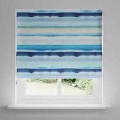 Featuring a beautiful watercolour stripe design, the Ocean Stripe roman blind crafted from recycled polyester is blackout lined to reduce unwanted external light. Suitable for any room in the house, it is available in a range of sizes, and supplied with all fixings included for easy installation.