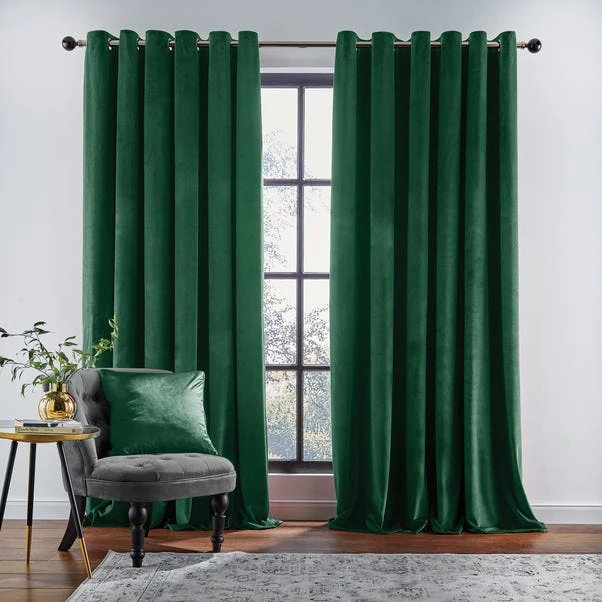 Dunelm Recycled Velour Bottle Green Eyelet Curtains