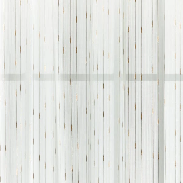 Metallic gold tread has been woven into a white sheer panel for a glamorous look. Crafted from 100% polyester, this versatile slot top voile panel can not only be used traditionally in your windows, but also to create a separate room with room panels. This helps you improve privacy and make the most of your space. Various sizes are available, find the one best suited to your home.