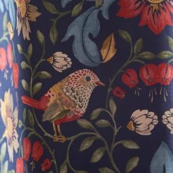Give your room a fresh look with the Ruskin designed curtains inspired by arts and crafts patterns. The pattern has been printed onto a rich navy, 100% cotton face fabric and lined with a striped polycotton lining. The lining will help preserve the design and front fabric from fading, making these curtains long-lasting. Complete with a smart eyelet header, these curtains are designed for use with a curtain pole. Coordinate the curtains with the matching cushion for a stylish room look.