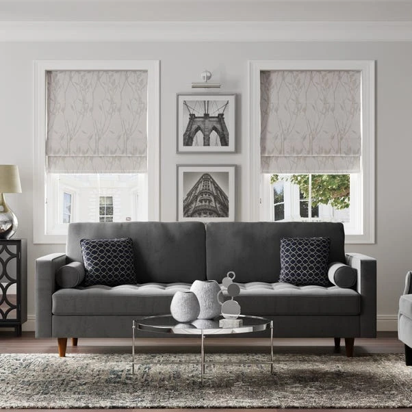 Decorated with a beautiful jacquard design, this roman blind features a Japanese inspired trailing leaf pattern in silver on white. Create a tranquil atmosphere in your home by pairing this roman blind with other coordinating items from the Zen collection. for added insulation and privacy, this roman blind is available in a choice of sizes to suit your needs.