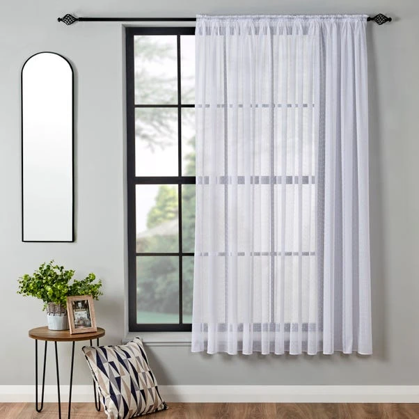 Beautifully crafted from 100% polyester, this voile boasts a heavy vertical slub lace design with a voile look. The voile has been finished with a slot top which can be hung both inside and outside of the recess. Our Voile offers privacy to your home in style. Easily care for the lace by hand washing when cleaning is required.