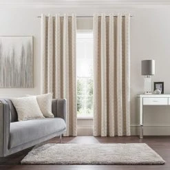 Crafted from stunning jacquard chenille fabric for a beautifully soft texture, these elegant Cream curtains are decorated with a stylish ogee pattern and are perfect for bringing a luxurious finish to any room. These curtains are fully lined to improve insulation while increasing privacy and are designed with a modern eyelet header for easy hanging and a gorgeous drape. Available in a selection of widths and drops, these curtains are ideal for lending an opulent edge to your décor.