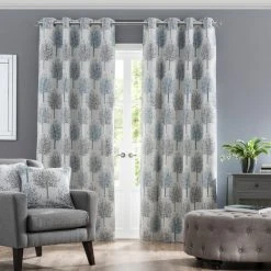 Designed with an eyelet header for easy installation, these contemporary jacquard curtains feature a stylish tree print in a fresh teal colourway and are ideal for adding a touch of nature to your home. These curtains benefit from a full lining for increased privacy and an improved drape. Crafted from durable polyester for enhanced longevity, these unique curtains are available in a selection of widths and drops to suit your requirements.