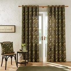 Our Natural History Museum Arboretum Curtains feature a beautiful foliage and bird detailed design that will bring nature right into your home. These curtain panels feature a siskin, nuthatch and lesser spotted woodpecker on a luscious lily pad green backdrop that helps to elevate the woodland inspired design. The pattern has been printed onto a polycotton face fabric and lined with a striped cotton rich lining. The lining will help preserve the design and front fabric from fading, making these curtains long-lasting. Complete with a durable brushed steel eyelet header, these curtains are designed for use with a curtain pole. Coordinate the curtains with the matching cushion for a stylish room look.